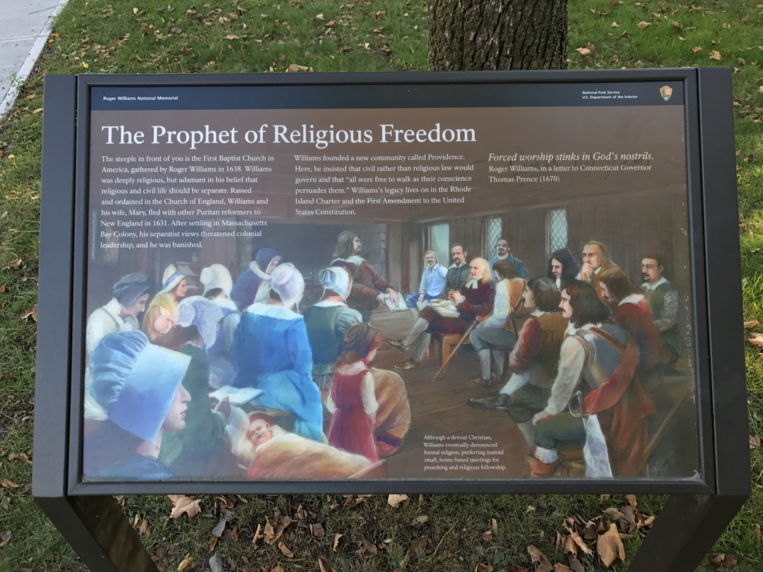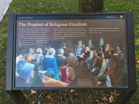 Another hours’ drive took us to Providence RI and the Roger Williams National Memorial. No, not the pianist Roger Williams, but the one that had a huge impact on the separation of church and state in America!