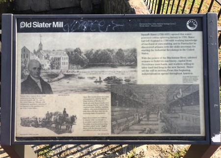 Our next stop was the Blackstone Valley Visitor Center in Pawtucket RI. The Slater Mill, America’s first successful water-powered spinning mill, is across the street (seniors $10). The mill (1790) has displays showing the evolution from hand-crafted textiles to those made by machines.