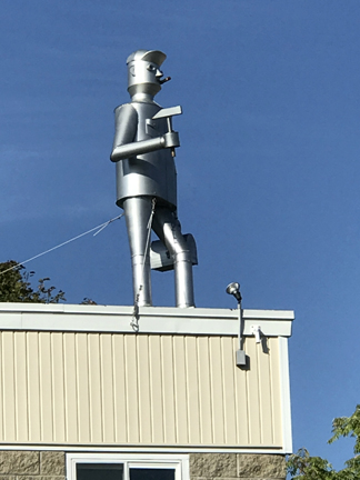 We liked the “Tin Man” atop a nearby building; the cigar had a light in the end!