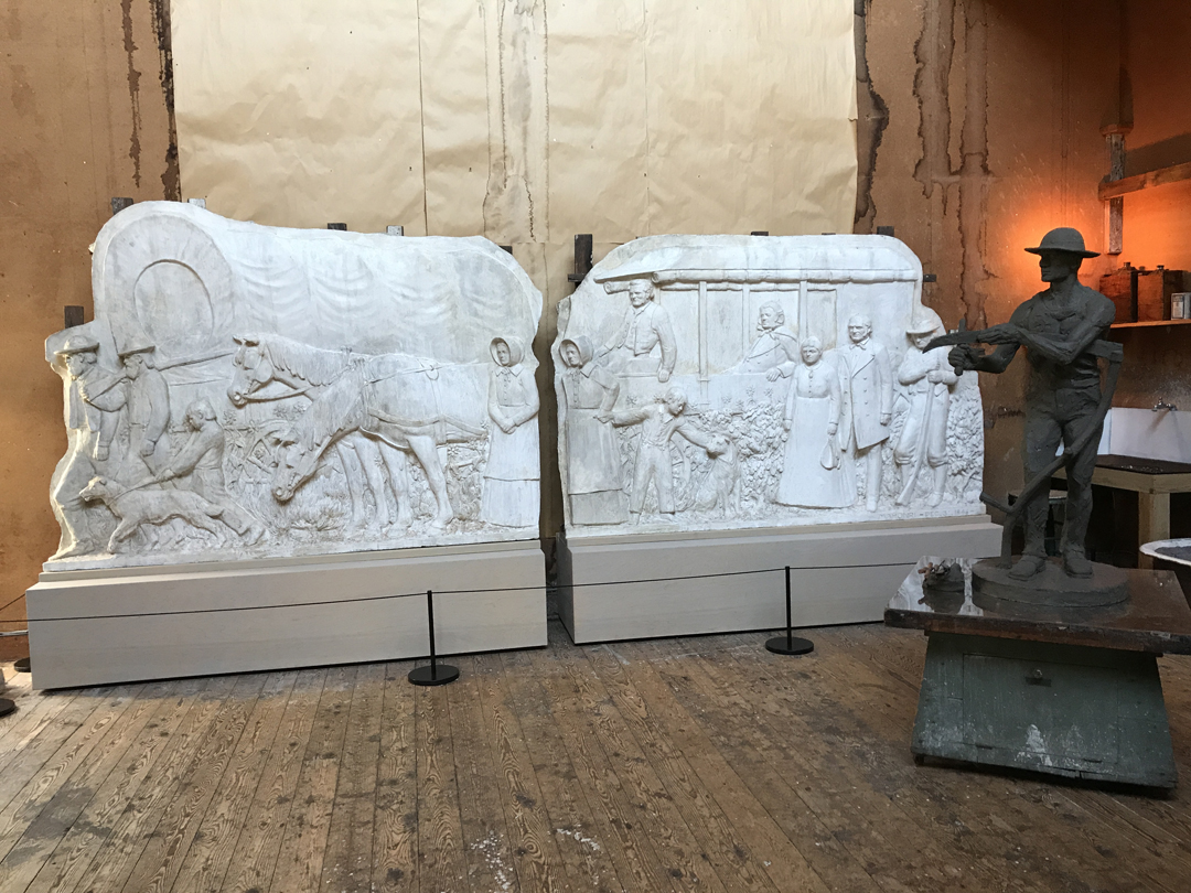 Young was one of Brigham Young’s grandsons (he had many!) and in 1939 was commissioned to create a sculpture commemorating Utah’s early history. He created his largest work, titled “This is the Place.” Those were the words of Brigham Young when he entered the Valley of the Great Salt Lake in 1847. It was dedicated on July 24, 1947 in Salt Lake City. Young also did a marble statue of Brigham Young that is in the Capitol in Washington DC.