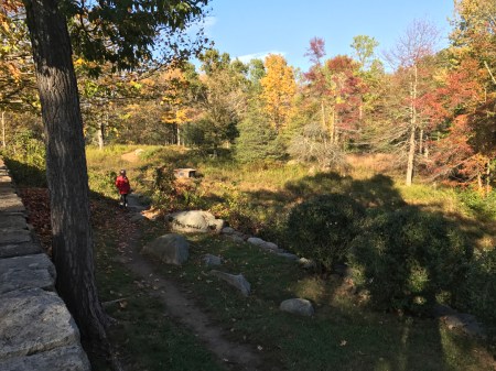 Afterward, we decided to hike, rather than ride the mini-bus back to the FDR Visitor Center. It was a one-mile hike down the hill to Val-Kill and then another two plus miles along the Hyde Park Trail to our car.