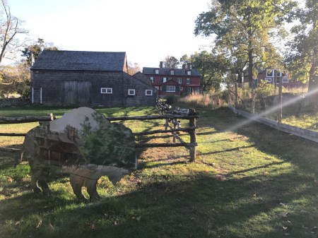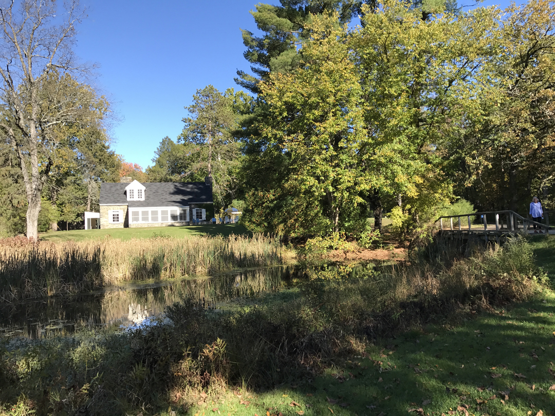 Arrived at the Weir Farm National Historic Site Visitor Center (Burlingham House) in southwest CT for the 3pm tour. It was a cool, crisp, beautiful day. The afternoon sun and Fall colors enhanced the beauty of the place. We had an educational tour, explored the farm, took an enjoyable hike and overall had a wonderful experience. The site includes the Visitor Center, Weir house, Weir Studio, Young Studio, two barns, tack house, ice house, other out buildings, stone walls, and three gardens. The tour begins with a 13-minute video in the Visitor Center titled “Legacy of Landscape.”
