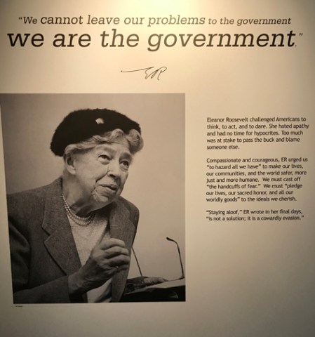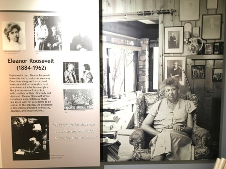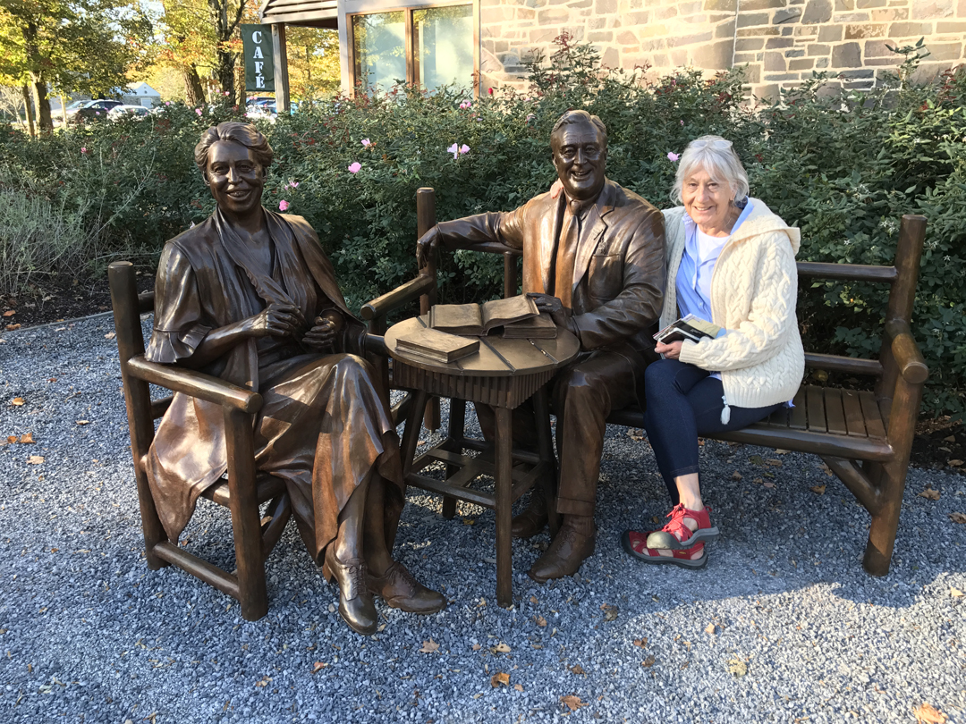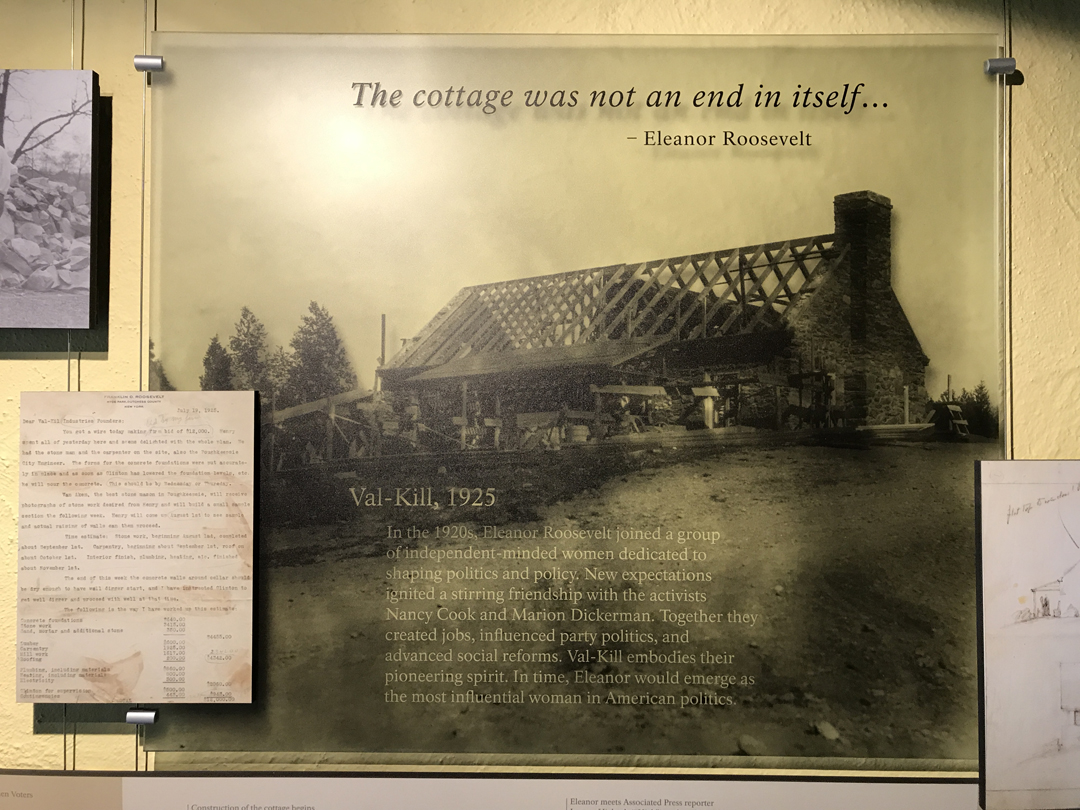 It took about ten minutes to drive to Eleanor Roosevelt National Historic Site. Our hour tour began with a film on Eleanor’s life. Eleanor (1884-1962) championed social welfare and civil rights. In 1918, she discovered that FDR was having an affair with her social secretary Lucy Mercer. Despite this devastating news she continued to support FDR and his political ambitions. After FDR contracted polio in 1921 she helped him return to public life. She also joined the Women’s Trade Union League and met political veterans Nancy Cook and Marion Dickerman that year. They would become her mentors and friends. At this point, she had lived in her mother in law’s home for almost two decades and desired her own space. Val-Kill Cottage, now called the Stone Cottage, was built two miles from the “big house.” It became both her retreat and a center for advocacy. It was also a place for family picnics, walking in the woods, swimming, tennis, riding, and socialization. At Val-Kill she emerged as a political leader.