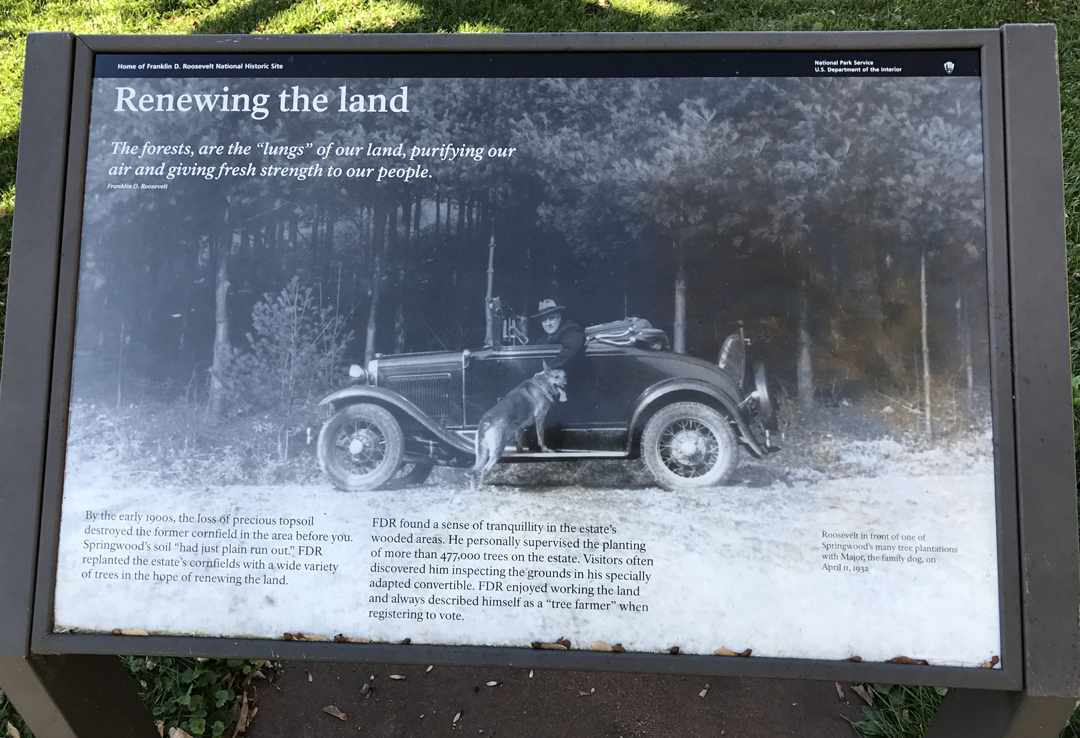 The CCC played a critical role in FDR’s strategy to conserve land and natural resources. It employed three million men over nine years, and raised public awareness of the outdoors and the importance of natural resource preservation. My uncle Vincent Martin worked for the CCC. FDR was a conservationist. He had planted over half a million trees on his property in Hyde Park and then through the CCC three billion more trees were planted across the country. When registering to vote, he described himself as a “tree farmer!” The CCC also built campgrounds, trails, wildlife habitats, roads, bridges, and dams. “FDR expanded the National Park Service mission in 1933 to include not only parks and monuments but also national cemeteries, national memorials, and national military parks. He also added the parks in Washington, D.C.”