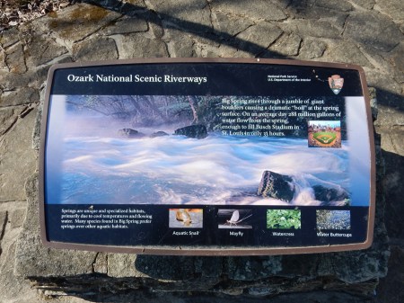 1/16 Tu – We started with a 1mi round trip hike to Blue Spring in the Ozark National Scenic Riverway – it was COLD, –3 degrees!