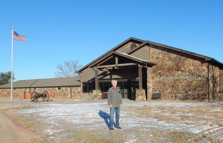 “The Battle That Saved Missouri for the Union.” Recall that yesterday we were at Wilson’s Creek National Battlefield. After that battle (August 1861) the Confederates withdrew, reformed and joined with other forces in Arkansas. Now a 16,000-man army, including about 1,000 Cherokees, their objective was to take St Louis. The 10,500 Federals knew they were coming and dug in along the bluffs above Little Sugar Creek and below Elkhorn Mountain, which is part of the Pea Ridge plateau. This was one of the few Civil War battles where the Confederates outnumbered the Federals.