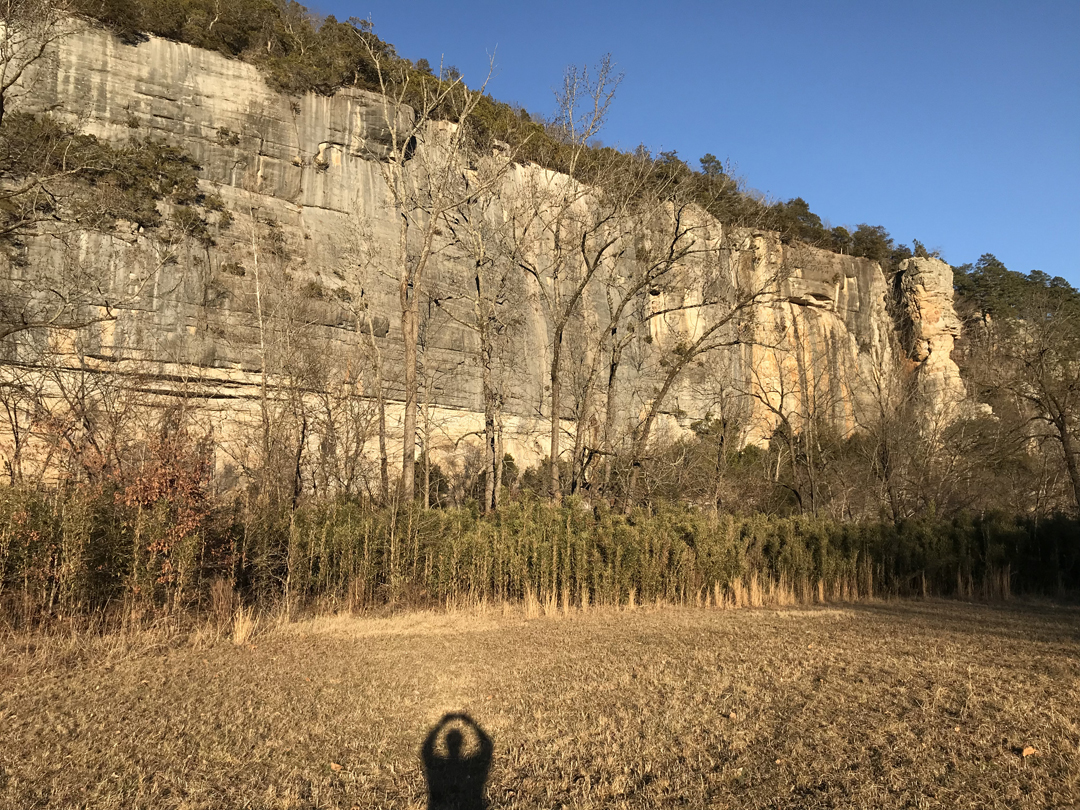 Photo of bluffs on the north side of the river. My shadow looks like I’m starting the O of the OHIO cheer!