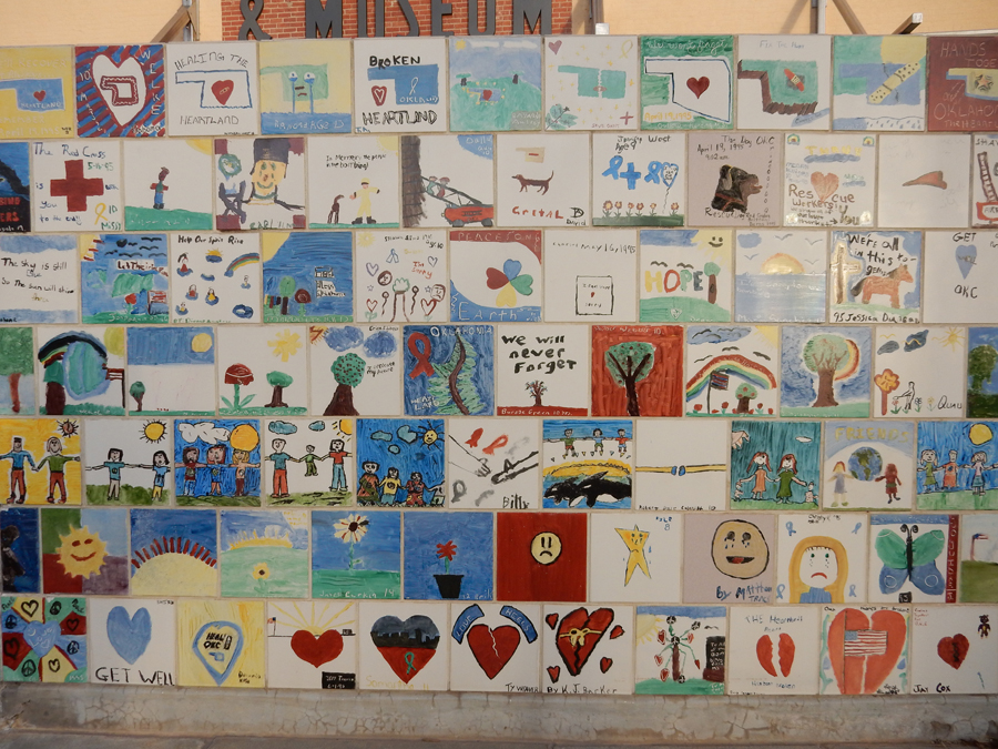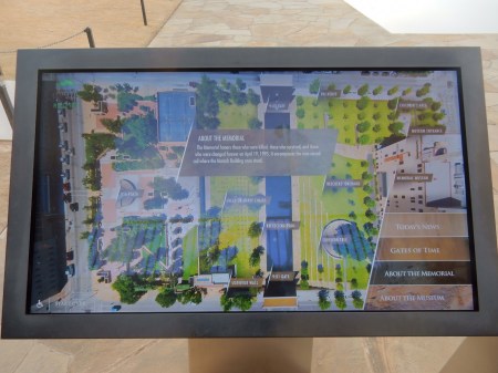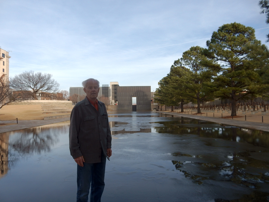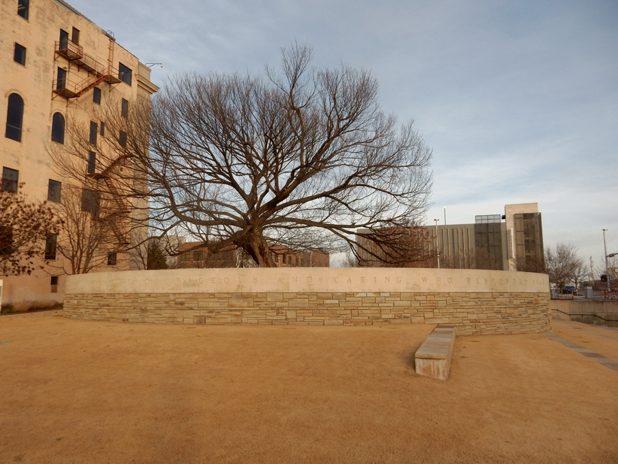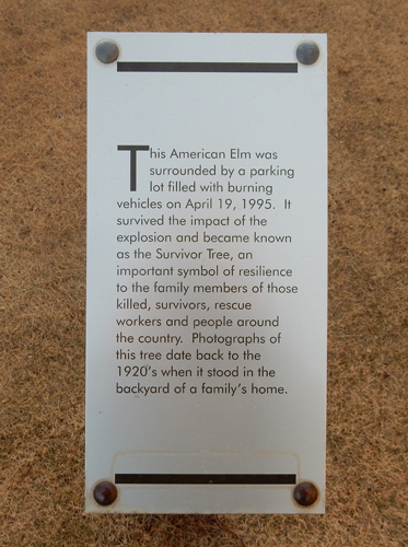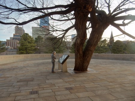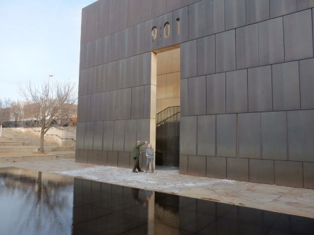 It took 5hrs to drive to the Oklahoma City National Memorial. It is not a National Park Unit but is an Affiliated Area with NP rangers on site. The Memorial commemorates the April 19, 1995 truck bomb explosion set off by Timothy McVeigh (now referred to as a “domestic” terrorist) outside of the nine-story Murrah Federal Building in Oklahoma City. The blast destroyed one-third of the building killing 168 men, women, and children. This is the outside of the West Gate of Time – on the opposite side is a Large 9:03.