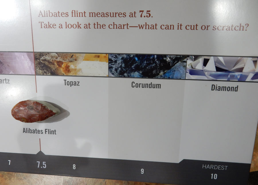 Mohs Hardness Scale (0-10) – harder means sharper. Alibates Flint is 7.5