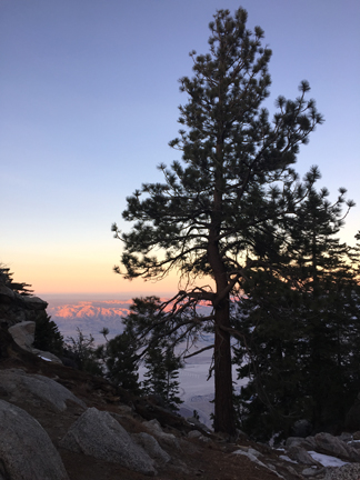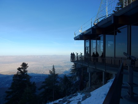 Now the “real” birthday surprise – arrived at the Palm Springs Aerial Tramway at about 5pm and took the world’s largest rotating tram car —travels 2.5 miles (takes 10-min) along the cliffs of Chino Canyon, to the pristine wilderness of Mt. San Jacinto State Park.