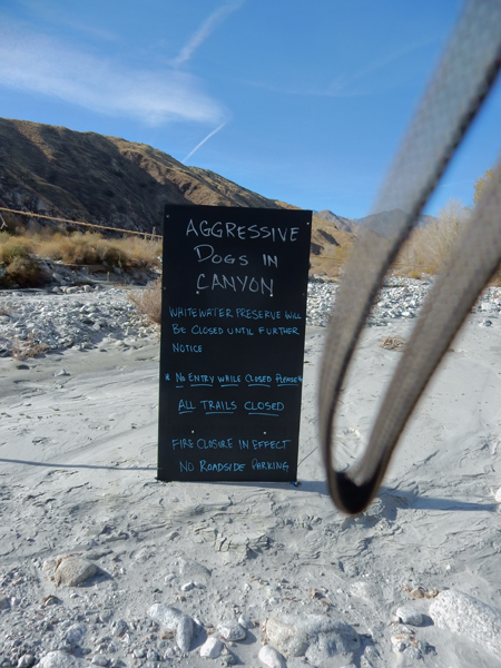 We had snacks and drinks in the car as we drove to the Whitewater Preserve in the new BLM Sand to Snow National Monument. We discovered it was closed because of Wild Dogs – we were told they had killed a cow the day before!