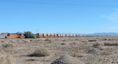 Trains run 24/7 both directions through the Mojave Desert. We saw several that were over 100 cars long with 6 engines