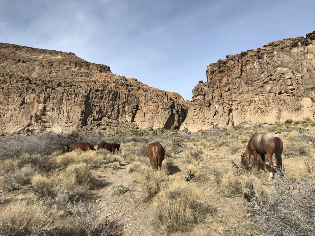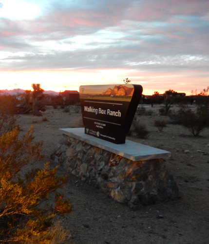 1/30 Tu – we were up early and drove back across the border into NV to access the Walking Box Ranch Road that drops south to the Nature Conservancy area. Sunrise in the desert –