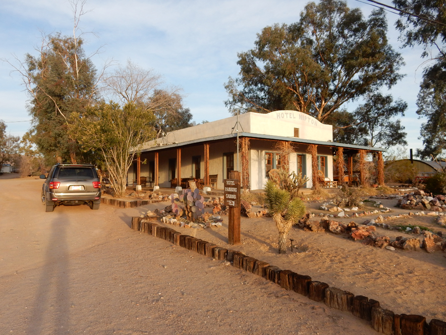 An old adobe building there, Hotel Nipton, served as a motel as far back as the 1920s. It was an overnight stop for Clara Bow, the “IT Girl” from silent movie fame. We were the only ones there and stayed in the Clara Bow room. That was nice because there were only male and female restrooms/showers for 5 rooms. One downside was that the Union Pacific RR tracks were only 50 feet from the front door and trains run 24/7 down this mainline!