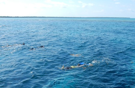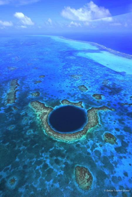 I had seen pictures from the air and thought that the rim of the Hole was above water (Belize Tourism photo). It was not, the rim (1000 feet diameter) was about 3 feet underwater. Was it high tide? Have sea levels increased due to Global Warming?