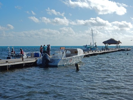 After 1.5hrs our outboard motor went kaput and we were stranded about 20min from Long Caye. Luckily, there was one more boat going to Long Caye and it was a half hour behind us. They towed us in to the dock.