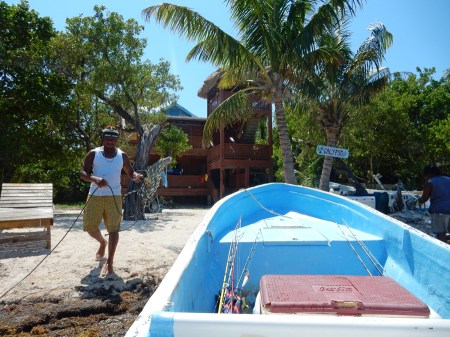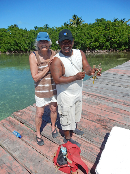 When we returned to our dock on Long Caye, we found some local fishermen cleaning their fish and conch