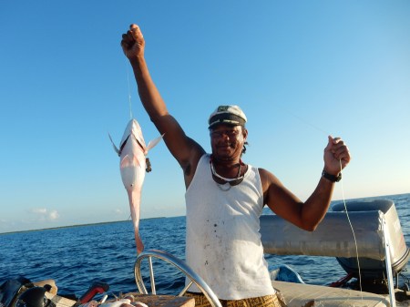 Reves motor was now fixed, so we decided to request a short fishing trip to give him some business. We were asked if Nidia and LeRoy could come along, of course, we said yes.