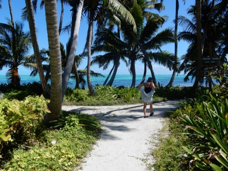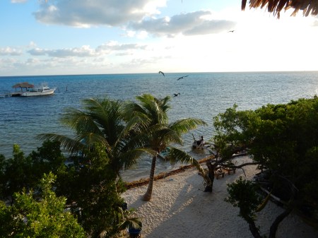 We walked to the west side of the island for sunset and then returned for a Belizian fried chicken dinner. We met Miles and Alyssa and their 3 children from Winston Salem NC (Wake Forest U) at Itza this evening. Helen taught the kids how to play solitaire and Farkle.