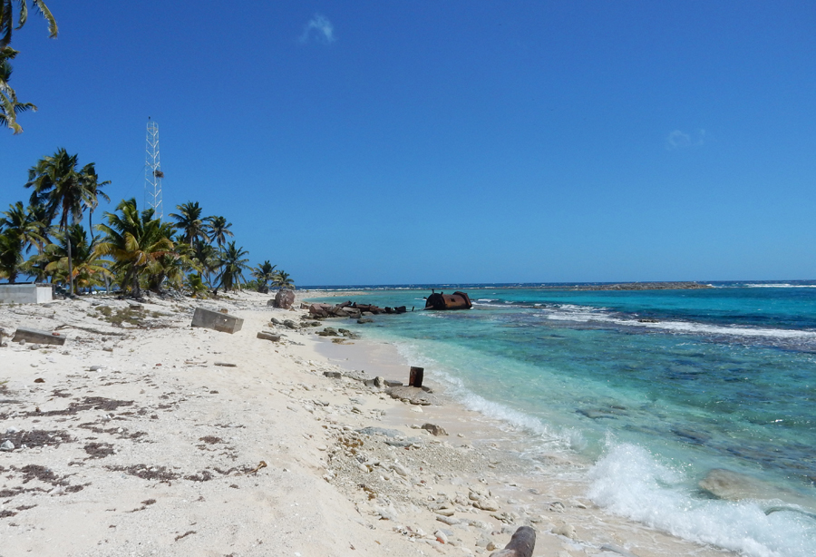 Then examined the remains of a lighthouse that Tropical Storm Matthew toppled into the sea in 2010. The steel tower on the left now has the operational beacon.