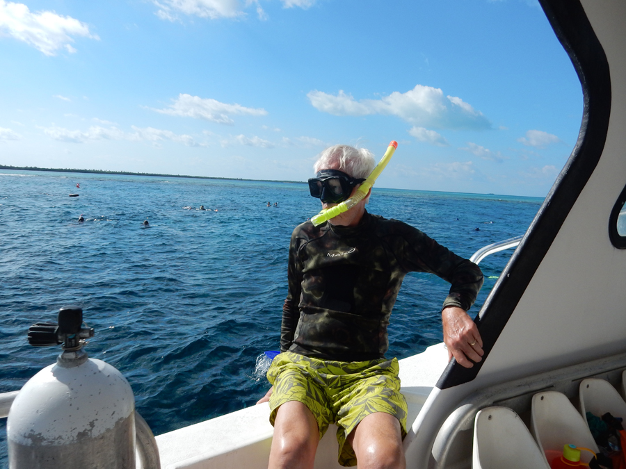 I had seen pictures from the air and thought that the rim of the Hole was above water (Belize Tourism photo). It was not, the rim (1000 feet diameter) was about 3 feet underwater. Was it high tide? Have sea levels increased due to Global Warming?