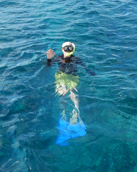 3/5 M – Went out to the “Aquarium” with the Wake Forest group this morning. I was able to snorkel for about an hour. Usually, I’m the one who is taking the pictures!