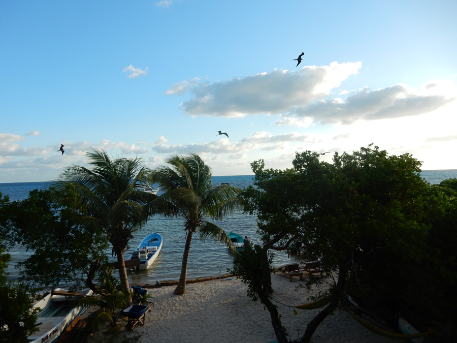 We walked to the west side of the island for sunset and then returned for a Belizian fried chicken dinner. We met Miles and Alyssa and their 3 children from Winston Salem NC (Wake Forest U) at Itza this evening. Helen taught the kids how to play solitaire and Farkle.
