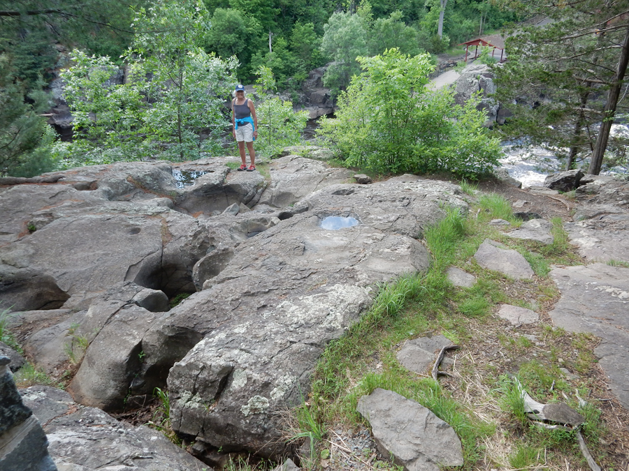 We rewarded ourselves with an “old-fashion” Root Beer Floats at the 1950’s Taylors Falls Drive-In Diner. They still have car-hops, though we sat at an “old-fashion” table for oldies! Afterward, we hiked the Pothole Trail in the Wisconsin Interstate State Park just south of St. Croix Falls. This is Wisconsin’s oldest State Park (1900).