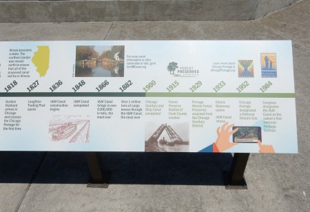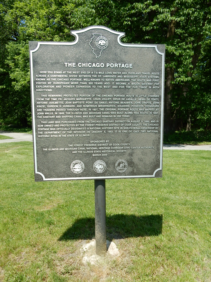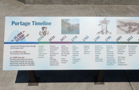 Think about it – one could travel by boat from the Atlantic Ocean, down the St Lawrence Seaway, through the Great Lakes to this site, portage (or paddle through a 7.5-mile marsh at high water) to the Mississippi River System, and continue by boat down the river, through the Gulf of Mexico, and back to the Atlantic Ocean! In 1848 the Illinois and Michigan Canal was completed eliminating the need to portage. This is the reason Chicago grew and prospered at this location. The next series of photos describes the history of this location.