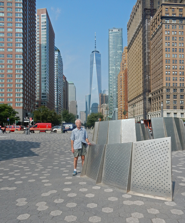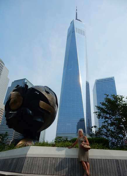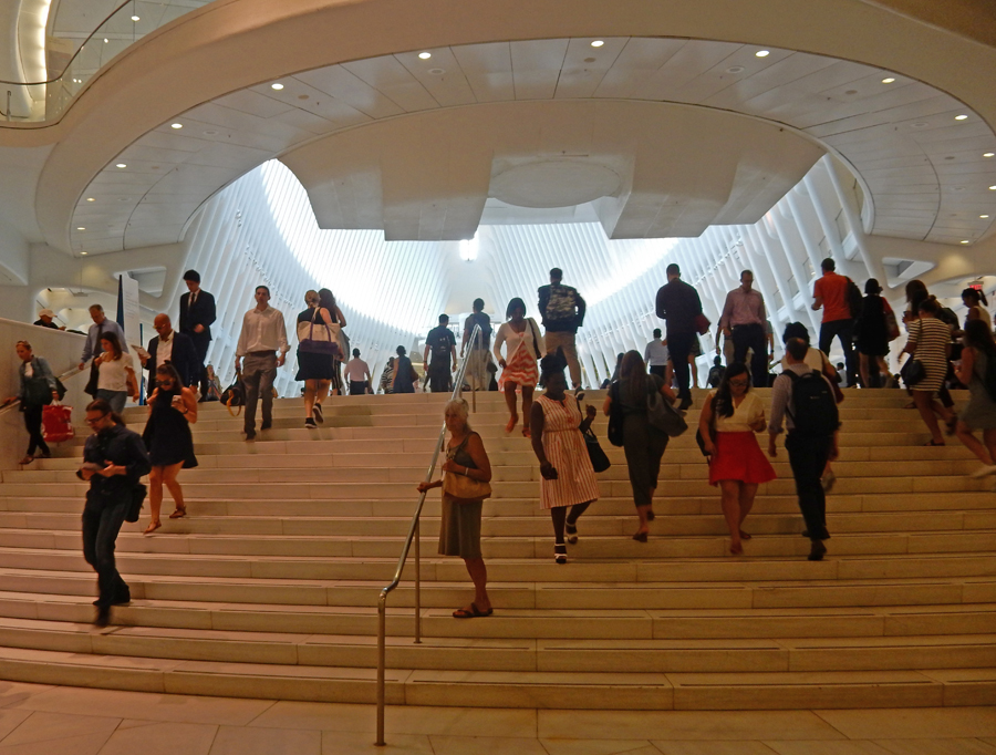 8/27 M – Alisa drove us to the Harrison station for the PATH train that takes you into the Oculus below the World Trade Center in NYC. The Oculus is a glass and steel structure designed by Spanish architect Santiago Calatrave to look like a dove in flight.