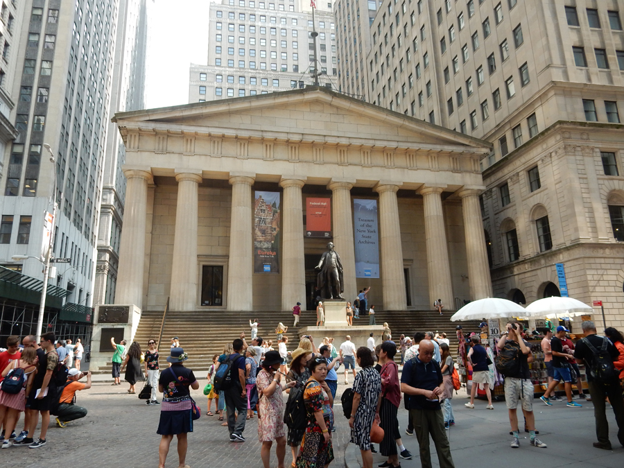 Our next stop was Wall Street, New York Stock Exchange, and Federal Hall National Memorial. I had been here three times before but never inside. Note Helen under George’s right hand.