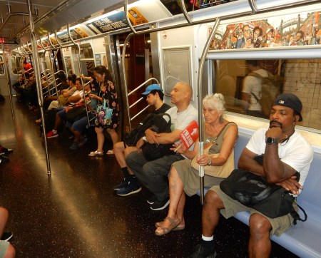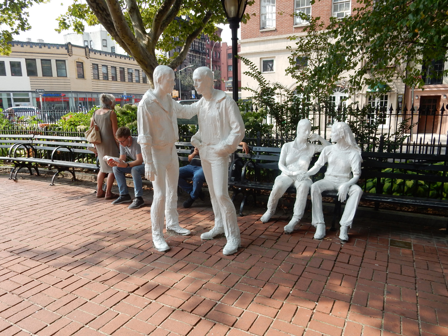 The next 1.6-mile walk was work – the heat index was >100 degrees! Helen cooling off in Washington Square Park as we walked through Greenwich Village