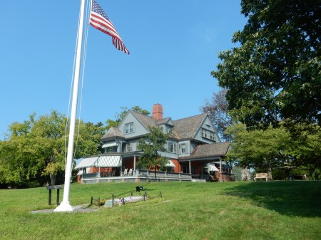 It was another scorcher of a day, so I walked back for the car while Helen waited in the Visitor Center. I picked her up at 2pm and we were able to make the 3:30 tour of Sagamore Hill National Historic Site on Long Island. Flag at half-staff for the death of Senator John McCain.