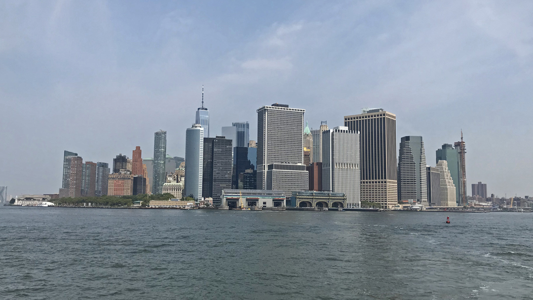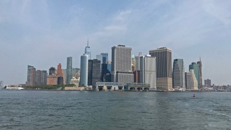 Leaving the Battery Maritime Ferry Building, Brooklyn Bridge on right – $1 round trip for seniors!