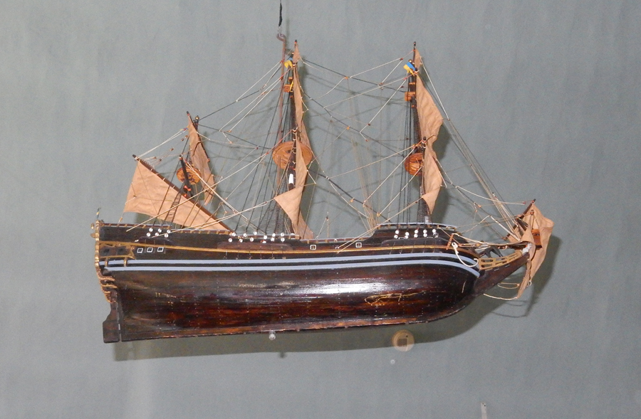 The Swedish colonists arrived in 1643 on two ships, the Fogel Grip and the Kalmar Nyckel. It was the second voyage for the Kalmar Nyckel, which landed in what is now Wilmington DE in 1638. Models of these ships hang from the ceiling.