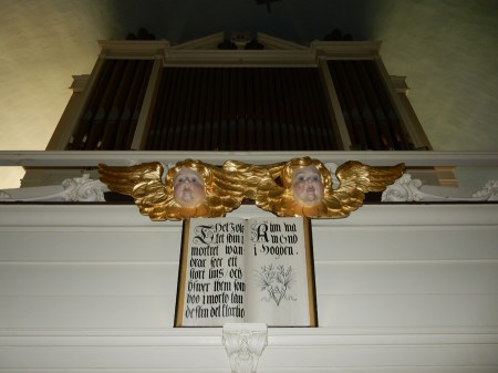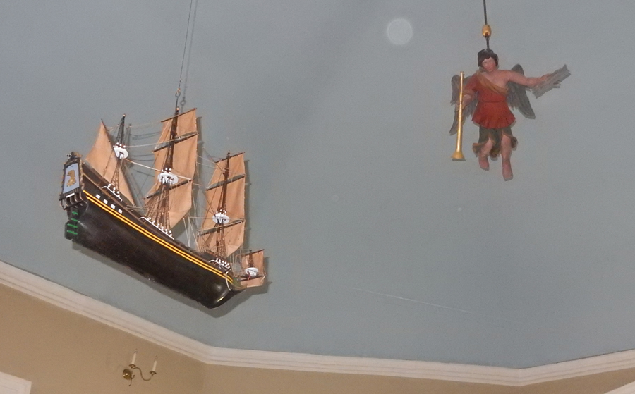 The angel Gabriel, common in Swedish churches, also hangs from the ceiling