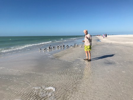 1/8 Tu – It took about 45min to drive to Bean Point on the northern tip of Anna Maria Island. Walked for 1.5hrs on the beach with Helen collecting shells as usual.