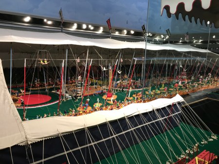 Tibbals Learning Center contains a “HUGE” re-creation of a circus set-up in Knoxville TN – a 42,000-piece circus model, the world’s largest. This is a partial view from the second floor –
