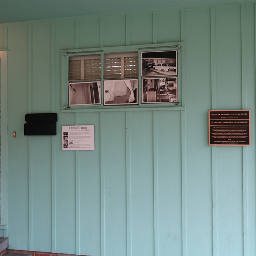 The assassination bullet went through Evers body, the front window, and inside wall (this photo), ricocheted off the refrigerator and ended up in a watermelon that was sitting on the kitchen counter