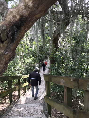 The Myakka Outpost, which is in the middle of the park, is a great place for viewing wildlife. You can also rent canoes there. We saw many birds and some alligators. We saw a flock of rosette spoonbills land and two egrets doing a mating dance, but they were too far away to get good photos. Hiked the Boylston Nature Trail through a hammock along the Myakka River.