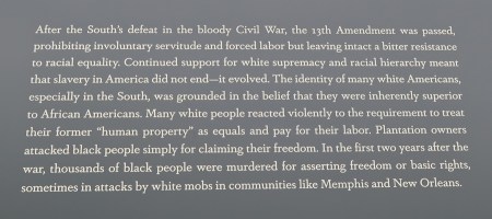 There is no hint of retribution in this memorial. This history, these facts, are to educate and move the observer to consider his/her moral compass. This is a slice of American History – America, the “Home of the Free and the Brave.”