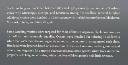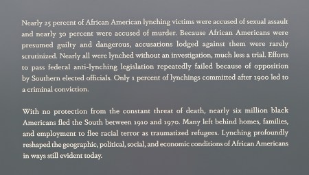 Proceeding down the next side of the rectangle (width) you descend an incline and now the hanging monuments become more representative of lynchings