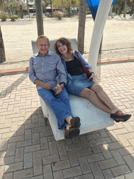 1/24 Th – Bev and Mike arrived about 9:30am, brought apple pie and Champaign! We played Skip-Bo and Farkle, Helen prepared a salmon salad for lunch, did the Bradenton Riverwalk, aces to kings, Scallop dinner at the condo, they left for home at 6:30