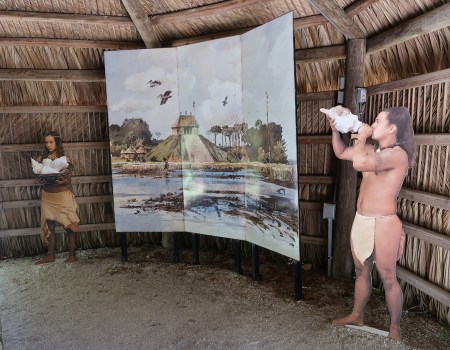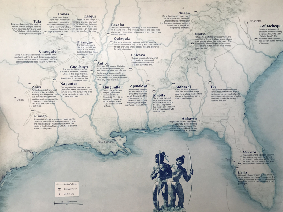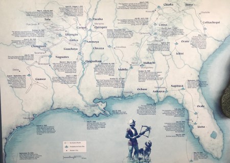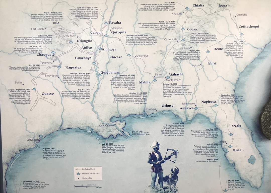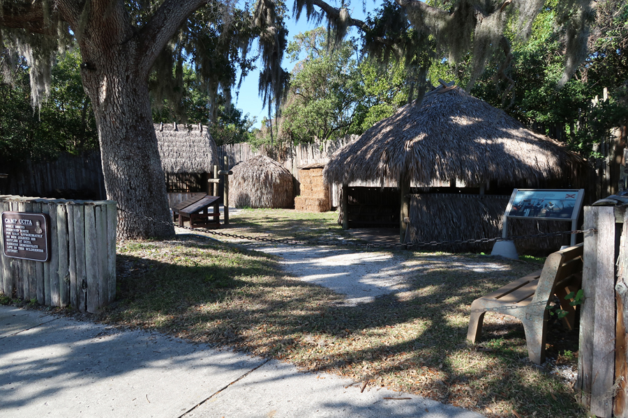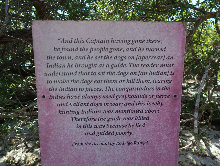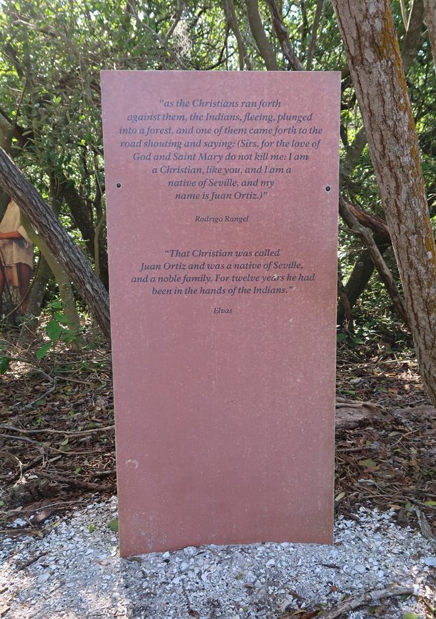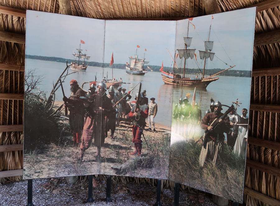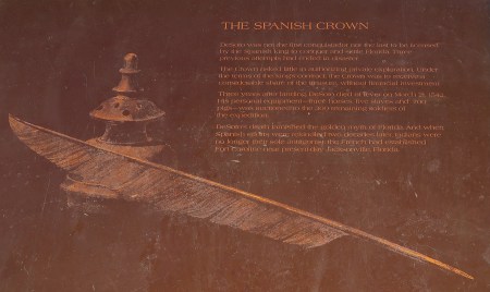 De Soto arrived at this location from Cuba in 1539 with 622 soldiers, 200 horses, a large herd of pigs, and fierce war dogs. He left 100 men at this location (Camp Ucita) and started on his trail of destruction looking for gold.