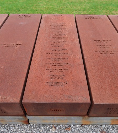 Just outside the memorial are duplicate steel monuments that can be taken and erected in the states/counties where these tragedies occurred.
