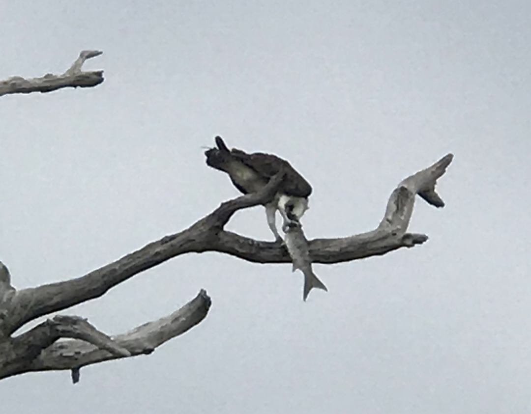 I saw what I think was an osprey fly in with its catch of the day. This pic shows it eating it’s lunch!