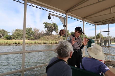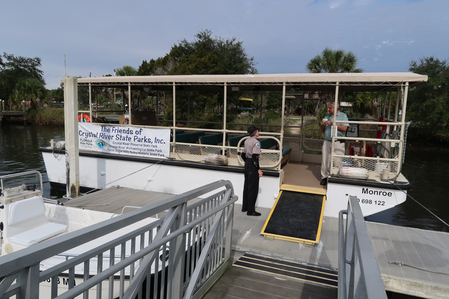 1/4/19 F – It took about 2hrs to get to Crystal River State Park on the Gulf Coast. We happened upon a Friends of Crystal River State Park 10am pontoon boat tour at the Visitor Center and signed up.