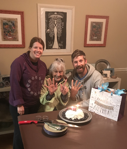 1/1/2019 Tu – Happy New Year! Walked the dogs with Peter, watched football (e.g. Ohio State 28, Washington 23, in the Rose Bowl), had BBQ ribs, and P & H did a Pre-Birthday Birthday celebration for Helen (cake, presents, etc.).