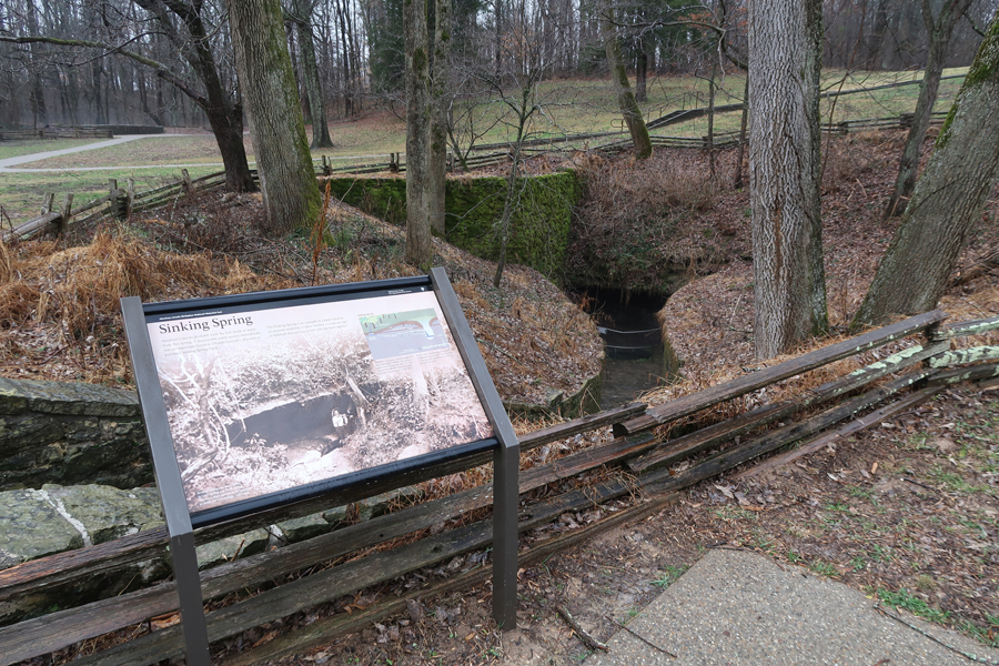Sinking Springs is located just to the left of the steps leading up to the Memorial