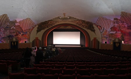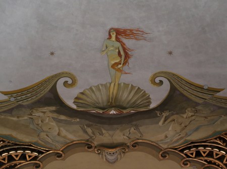 The ground floor theater was designed for excellent acoustics to accommodate the first “talkie” movies. The first shown here was “The Jazz Singer” starring Al Jolson.